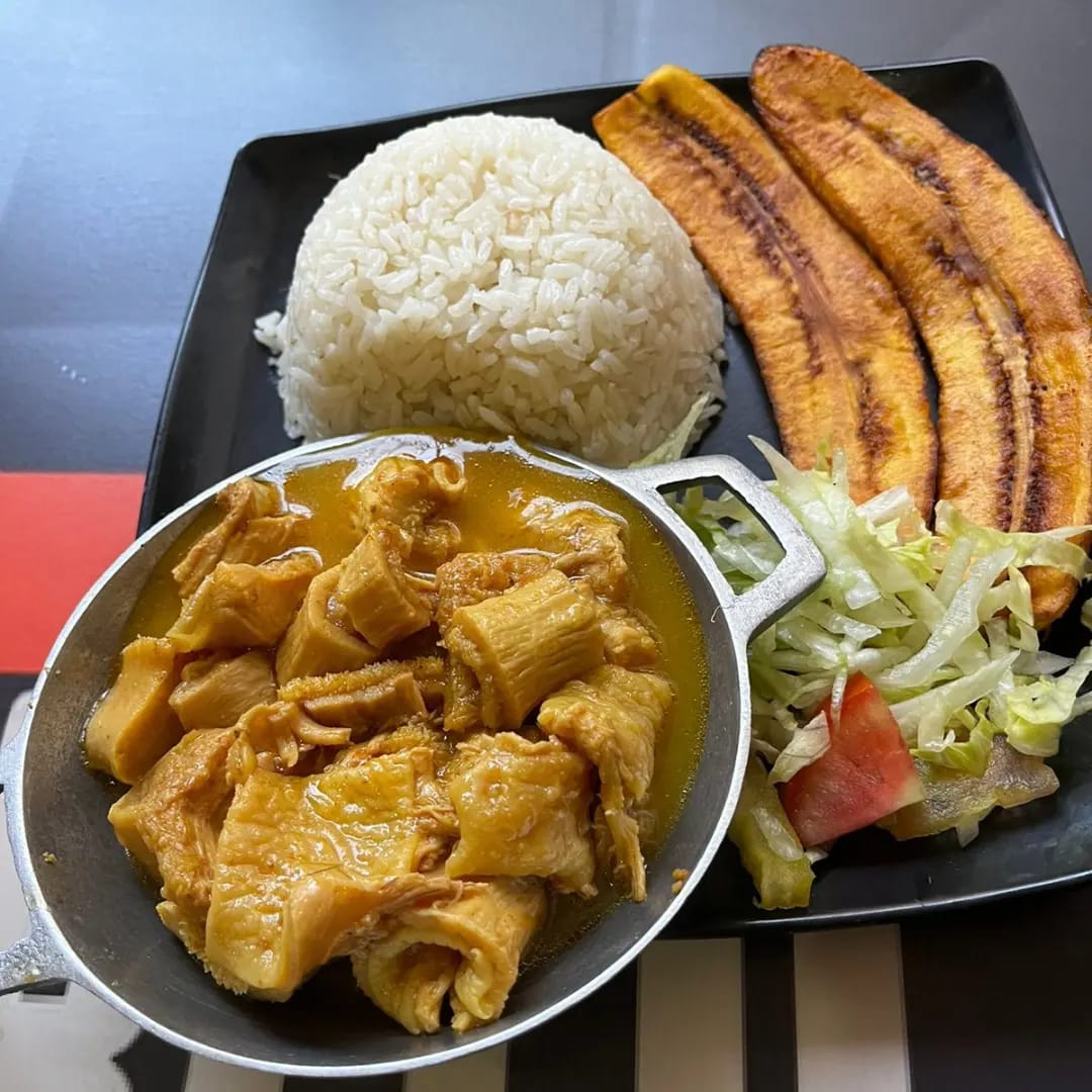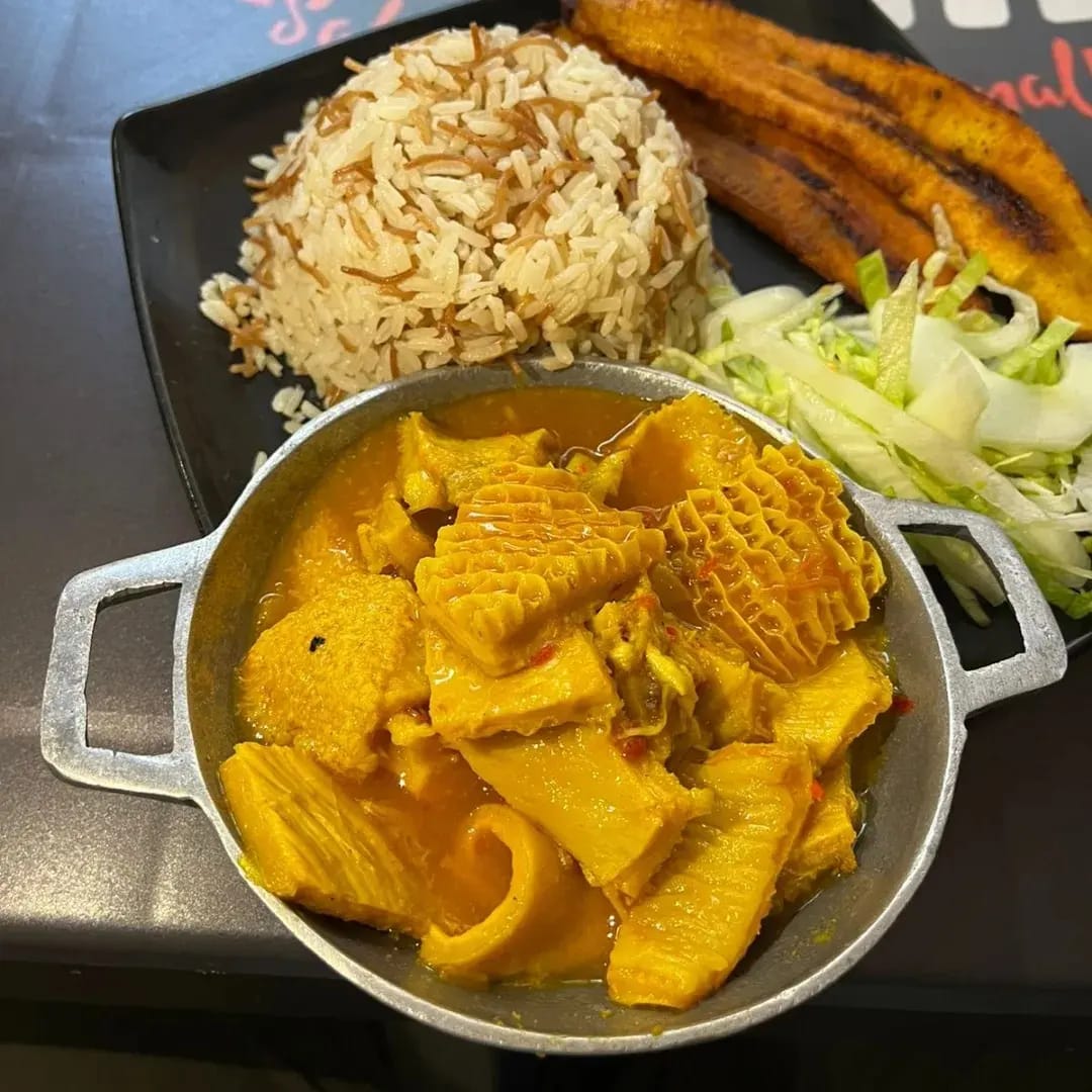 Acompañados de : arroz de coco o blanco, patacone, tajadas amarillas o yuca, sopa, ensalada