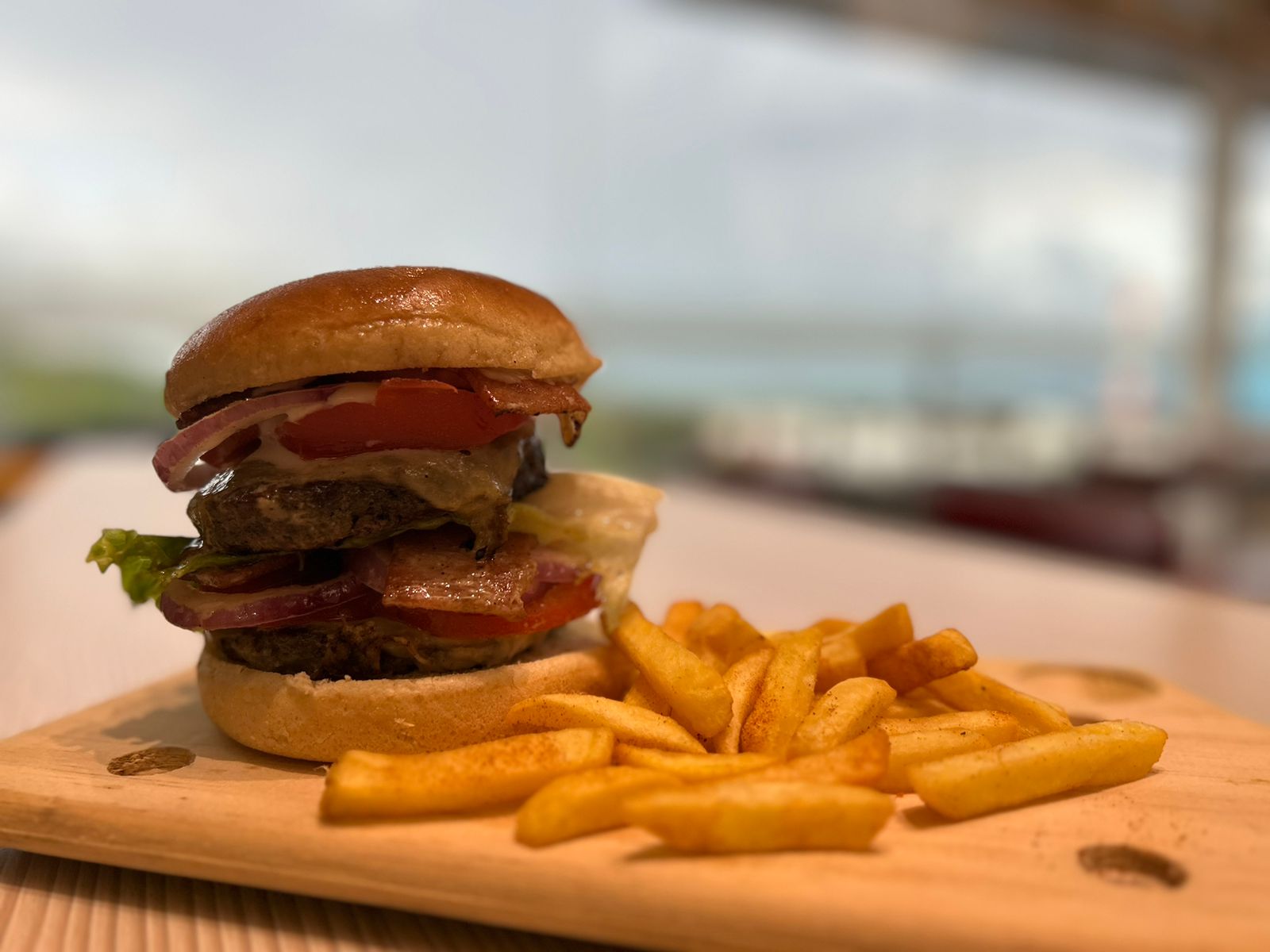 140gr de Carne, Queso, Tocineta, Lechuga, Tomate, Cebolla, Salsa de Ajo