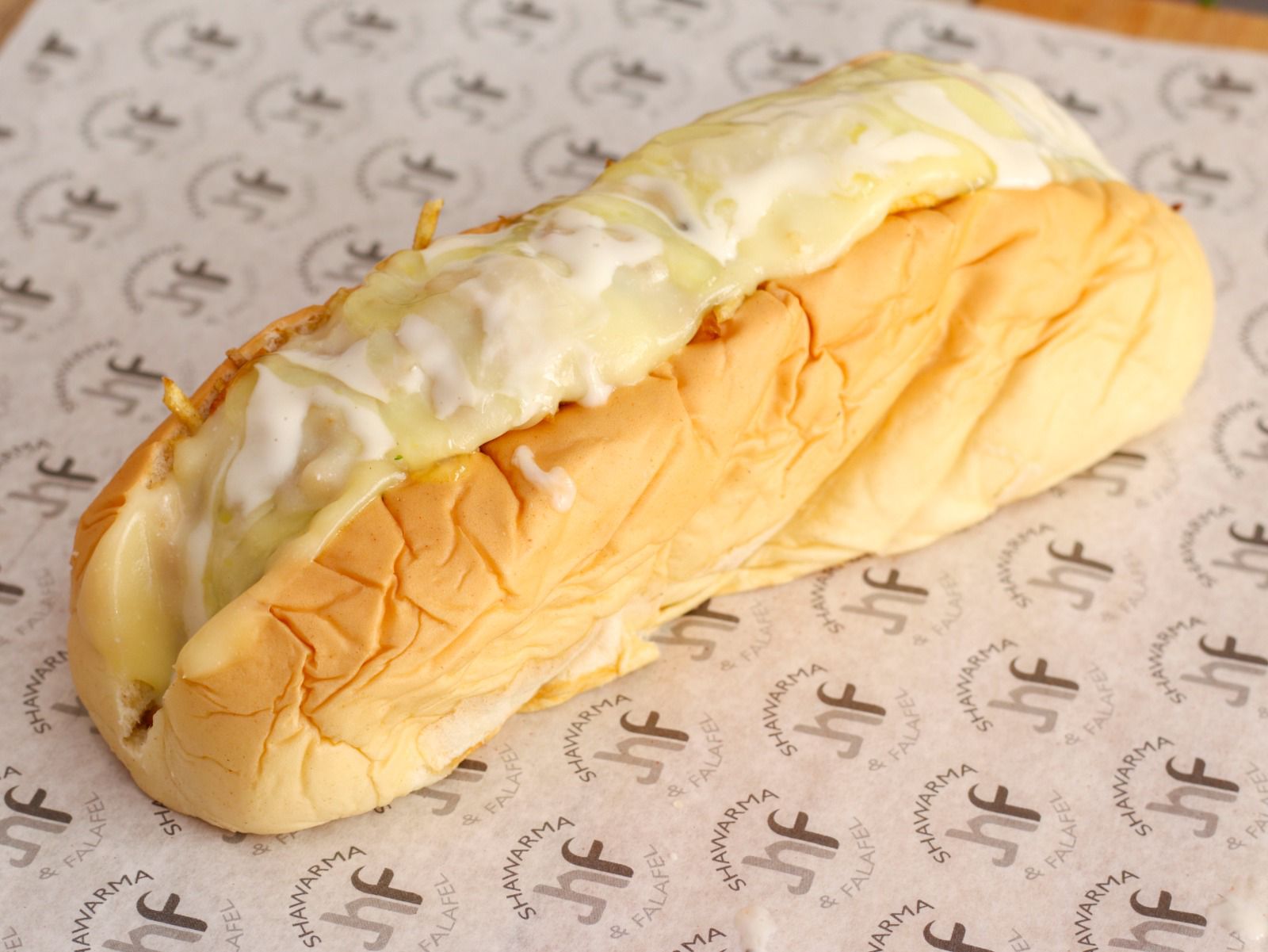 Salchicha Americana, Tabbule, Queso Mozarella, Cebolla, Papa Ripio, Salsa De Tahine Con Ajo Y Salsa Piña, Papas Y Gaseosa 250 Ml