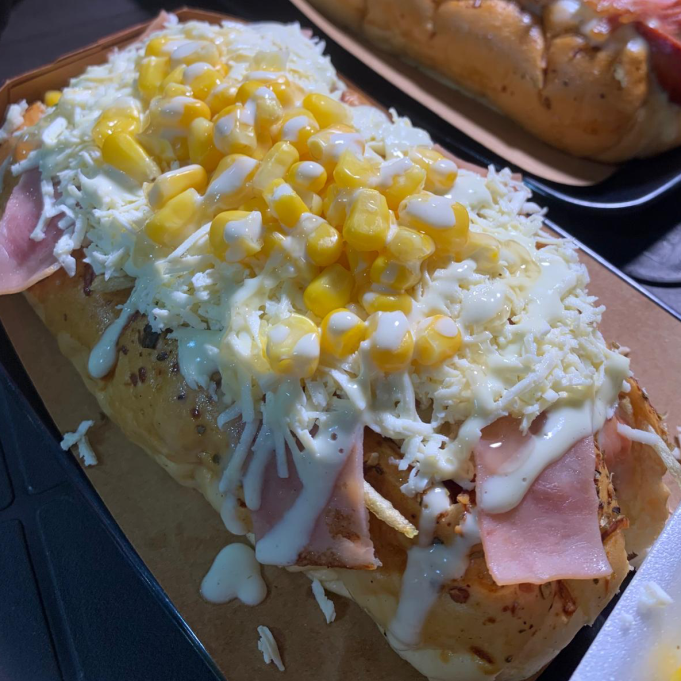 Pan de orégano o pan blanco, doble salchicha americana , queso costeño, queso mozzarella, jamón maíz y cebolla al gusto. salsas de la casa