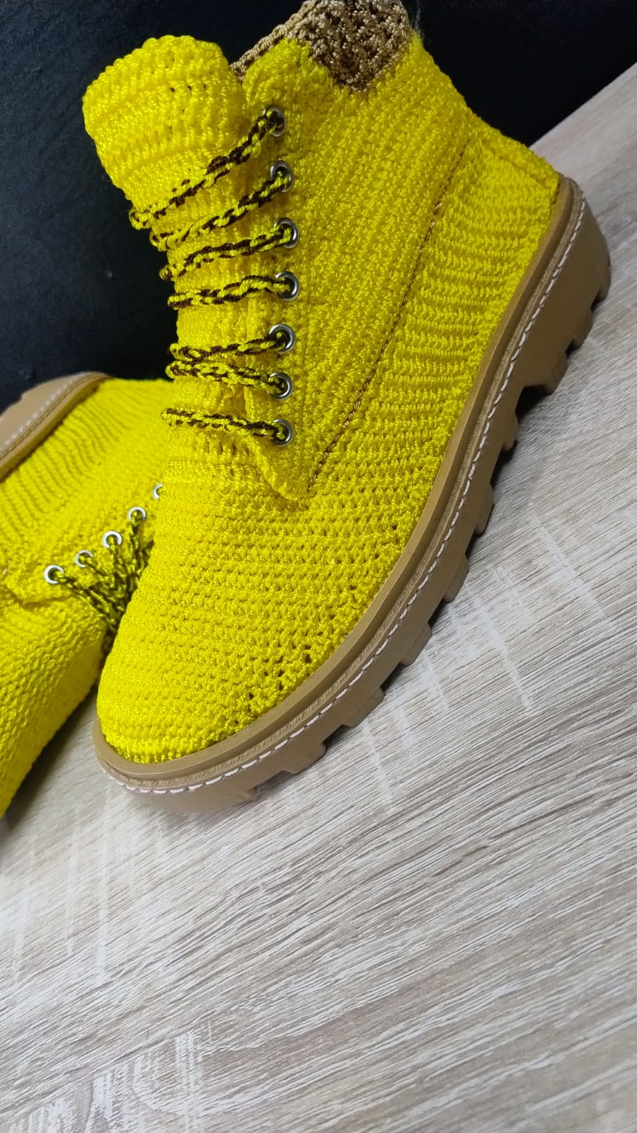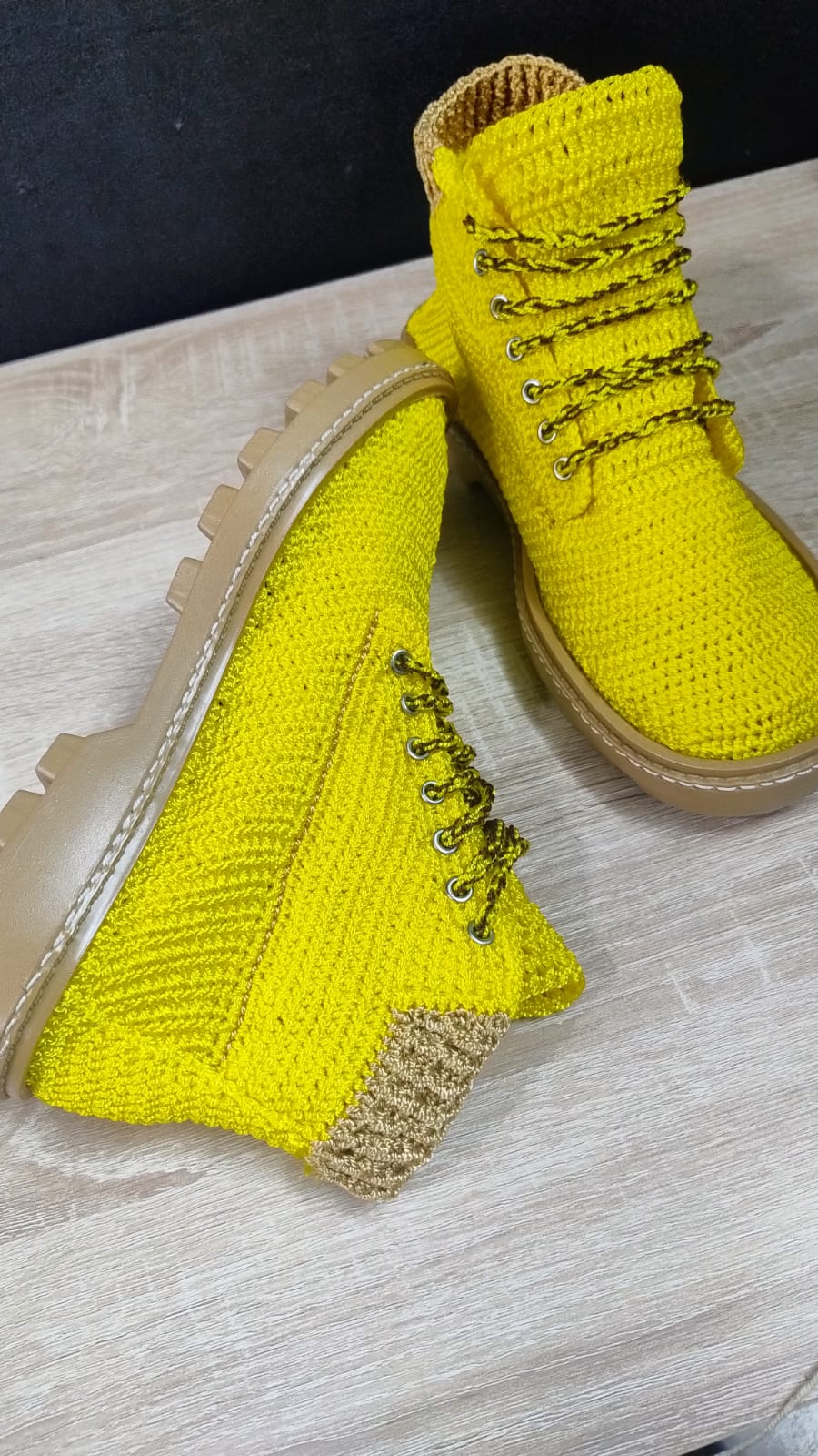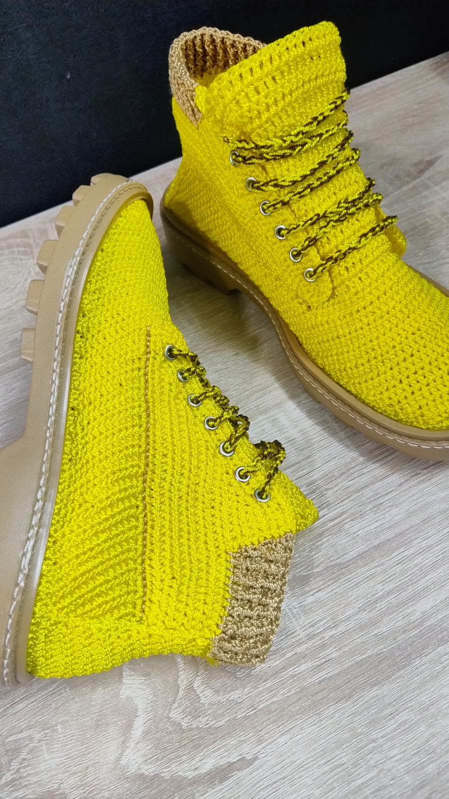 Botines tejidos a mano, ideal para quienes buscan uncalzado original, codomo y duradero, y lleno de personalidad. elaborados con materiales de alta calidad y suelas de goma tipo track, tejido moderno combinando la funcionabilidad con la tendencia y esencia artesanal, tranpirables, elegantes y duraderos.