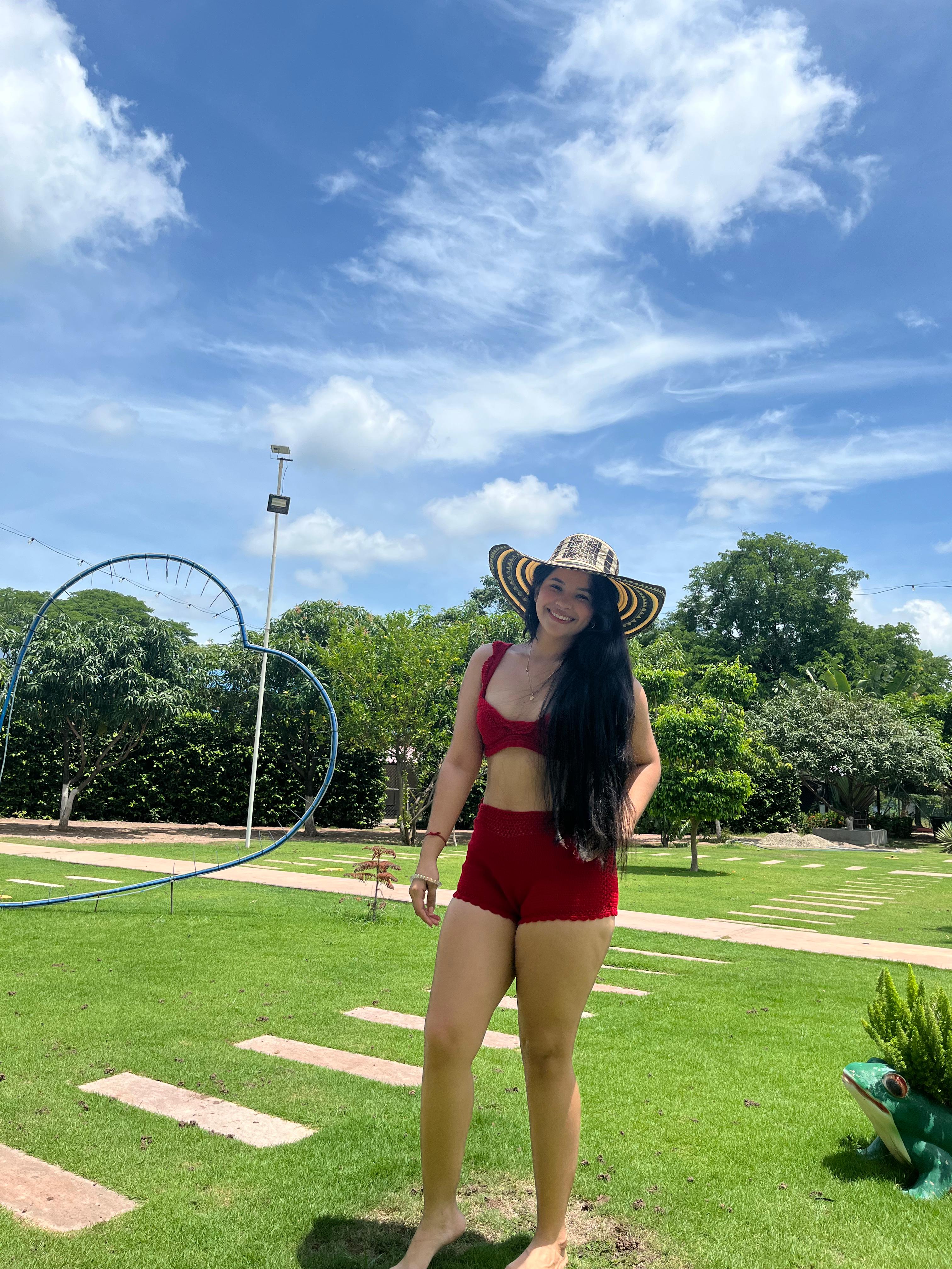 Luce unica y radiante este verano con este conjunto artesanal tejido en hilo de algodon rojo vibrante, su diseño comodo y favorecedor es ideal para dias de sol, tardes junto a la piscina o vacaciones en la playa