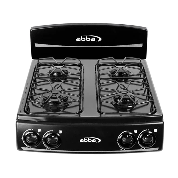 Sobremesa Abba 4Ptos GP Quem Lamina Ng ST 400-1 N QL: La estufa de sobremesa Abba de 4 puestos modelo ST 400-1 N QL es una opción eficiente y práctica para cocinas. Material de la mesa: Acero inoxidable con acabado porcelanizado, resistente y fácil de limpiar. Quemadores: Cuenta con 4 quemadores, de los cuales 3 son rápidos y 1 es ultra rápido, fabricados en lámina porcelanizada. Parrillas: Dos parrillas dobles en alambrón porcelanizado, diseñadas para mayor estabilidad y durabilidad. Encendido: Sistema de encendido manual. Perillas: Ergonómicas, para un manejo cómodo y seguro. Dimensiones: 51 cm de ancho, 58 cm de fondo y 13,5 cm de alto. Peso: Aproximadamente 7 kg. Tipo de gas: Compatible con gas natural y GLP (gas propano). Color: Disponible en negro y gris.